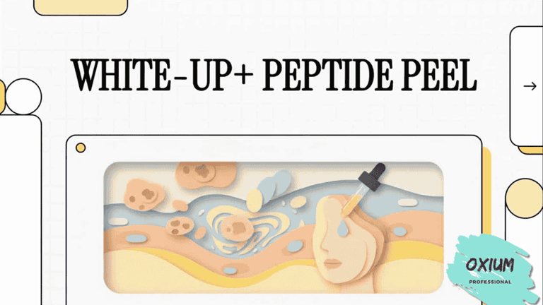 White-up + peptide peel is a medium-strength superficial peel designed to address the effects of photoaging and the appearance of pigmentation. This professional treatment combines various acids (AHA, AAHA, and PHA) with a high concentration of peptides. It includes our exclusive DMKS release system, which provides maximum comfort during application, high free acid release, and minimizes redness and inflammation.