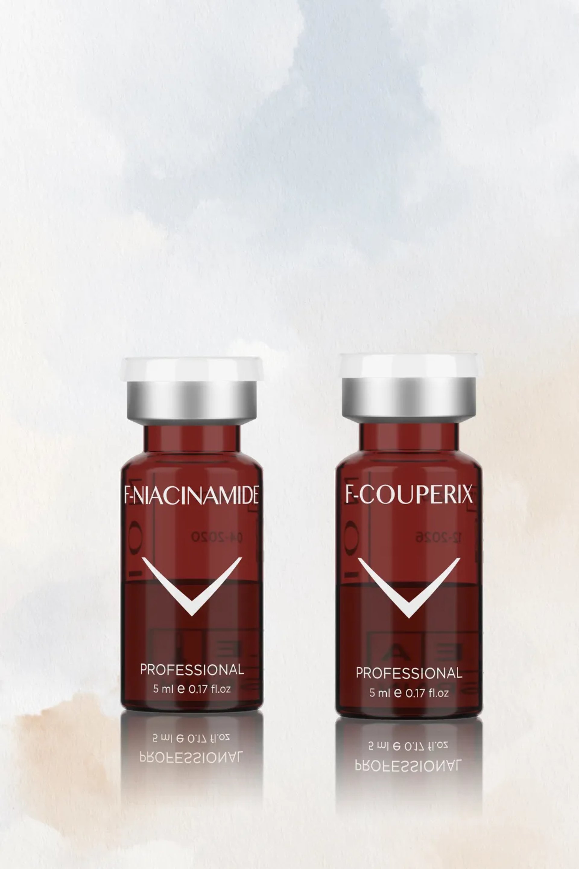F-COUPERIX: This is the definitive treatment for skin prone to redness and couperose. F-COUPERIX is a revolutionary cocktail designed to visibly reduce erythema, strengthen blood vessel walls, and prevent the formation of new telangiectasias (visible broken capillaries).