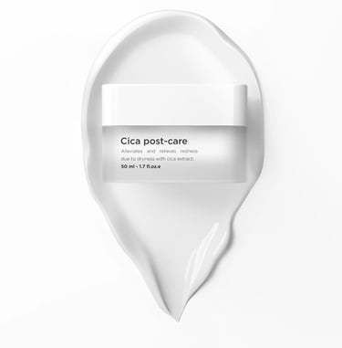 The CICA Post Care cream is formulated with Centella Asiatica (CICA) to calm and repair irritated or sensitive skin. Perfect for post-procedure care, it strengthens the skin barrier, minimizes redness, and provides lasting hydration.